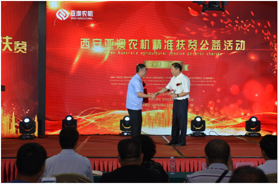 開(kāi)機(jī)儀式上,中國(guó)農(nóng)機(jī)化協(xié)會(huì)還就“甘肅省蘭州市永登縣”精準(zhǔn)扶貧工作給予亞澳高度的認(rèn)可。永登縣團(tuán)莊村屬干旱貧困山區(qū),全村現(xiàn)有7個(gè)村民小組,421戶、1696人。近年來(lái),幫扶單位先后捐贈(zèng)了30多臺(tái)(套)特色農(nóng)機(jī)具,但仍缺少大中型農(nóng)機(jī)具,農(nóng)機(jī)化服務(wù)能力不足,不能滿足農(nóng)業(yè)生產(chǎn)需求。此次中國(guó)農(nóng)業(yè)機(jī)械化協(xié)會(huì)聯(lián)合亞澳公司等有關(guān)單位向團(tuán)莊村捐贈(zèng)價(jià)值40多萬(wàn)元農(nóng)業(yè)機(jī)械,必將對(duì)團(tuán)莊和周邊鄉(xiāng)村農(nóng)業(yè)和農(nóng)村經(jīng)濟(jì)發(fā)展、全面建設(shè)小康社會(huì)起到很大地推進(jìn)作用。